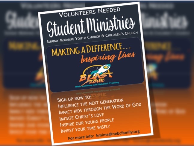 Calling All Parents! Come and help out once a month to help our students grow in Christ! Training will be provided.